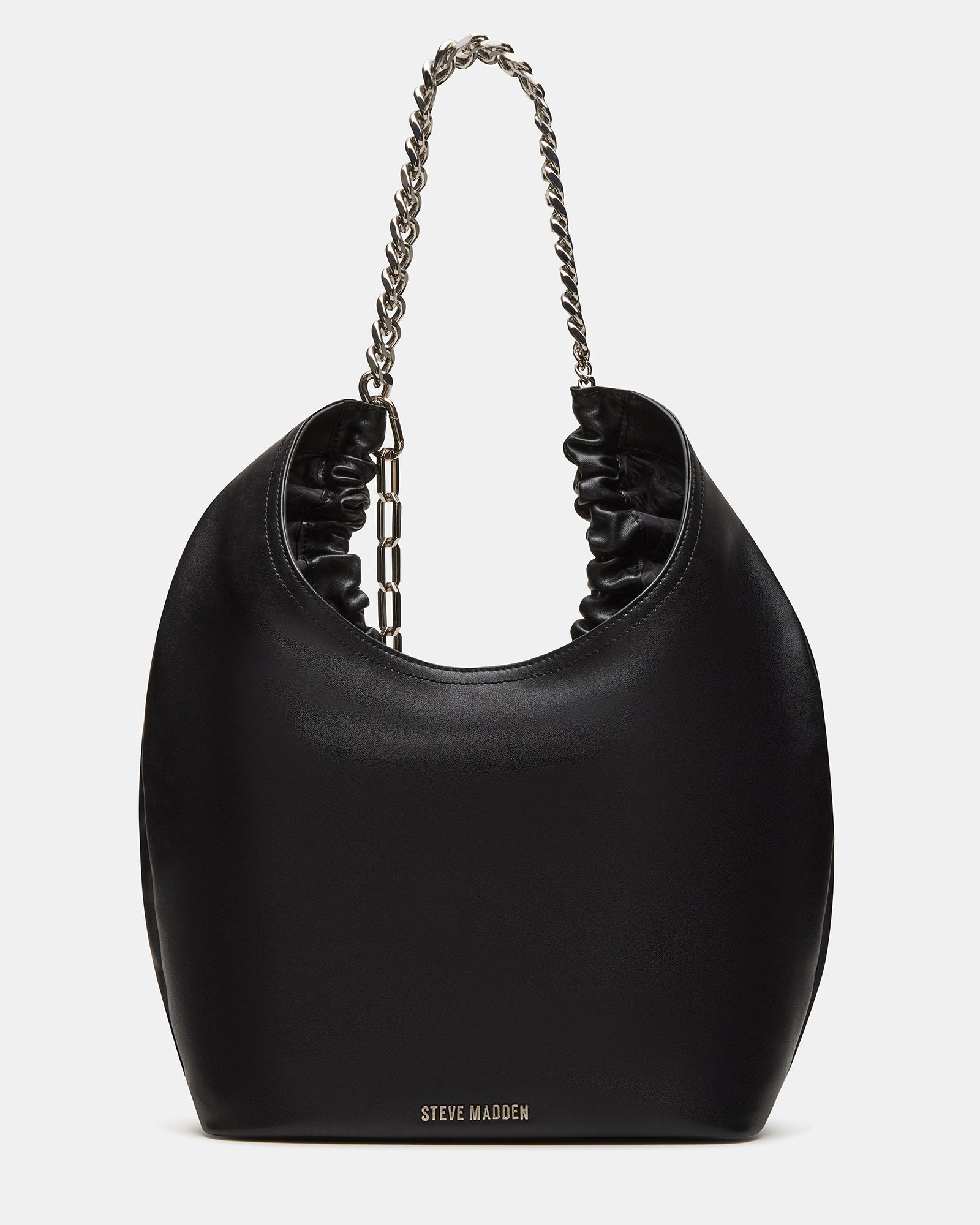Take on the day with the JASON bag. Featuring a soft hobo-ruched design, a durable chain shoulder strap, and a long chain dangle for added style. The mag snap closure tab keeps your items secure while the spacious yet lightweight design allows for effortless carrying. Go bold with this versatile handbag!