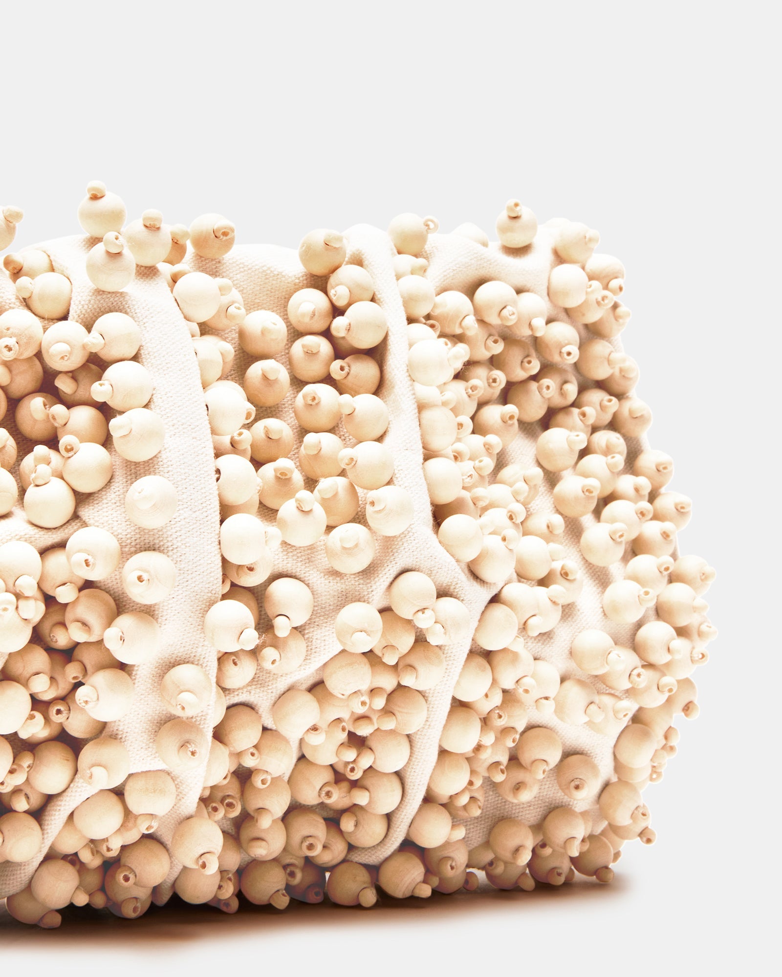 The TIKI wristlet features a slouchy construction with round beads individually stitched to the exterior in an allover design for a unique beachy nature-inspired look.