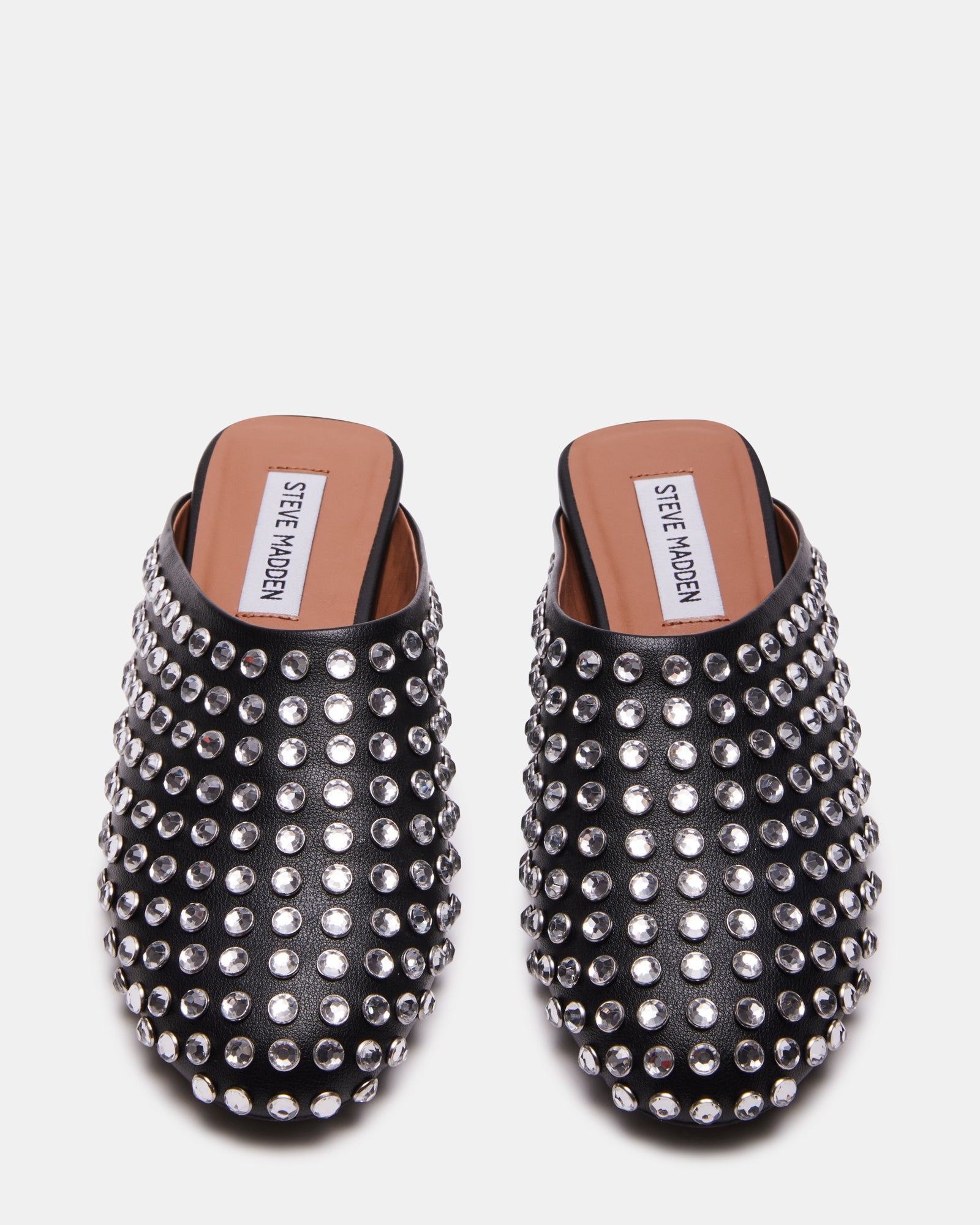 Slip into comfort with GLIMMER. These easy flat slip-on mules are adorned with sparkling rhinestones, perfect for adding some glitz to any outfit. No fuss, no hassle, just pure fun in every step.