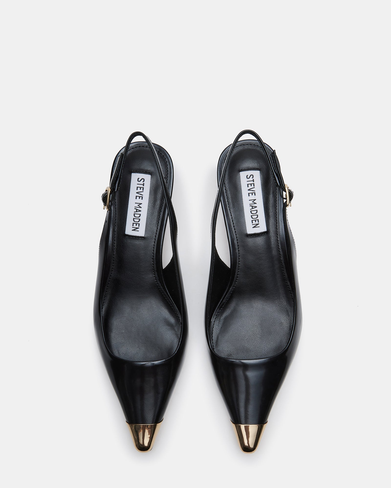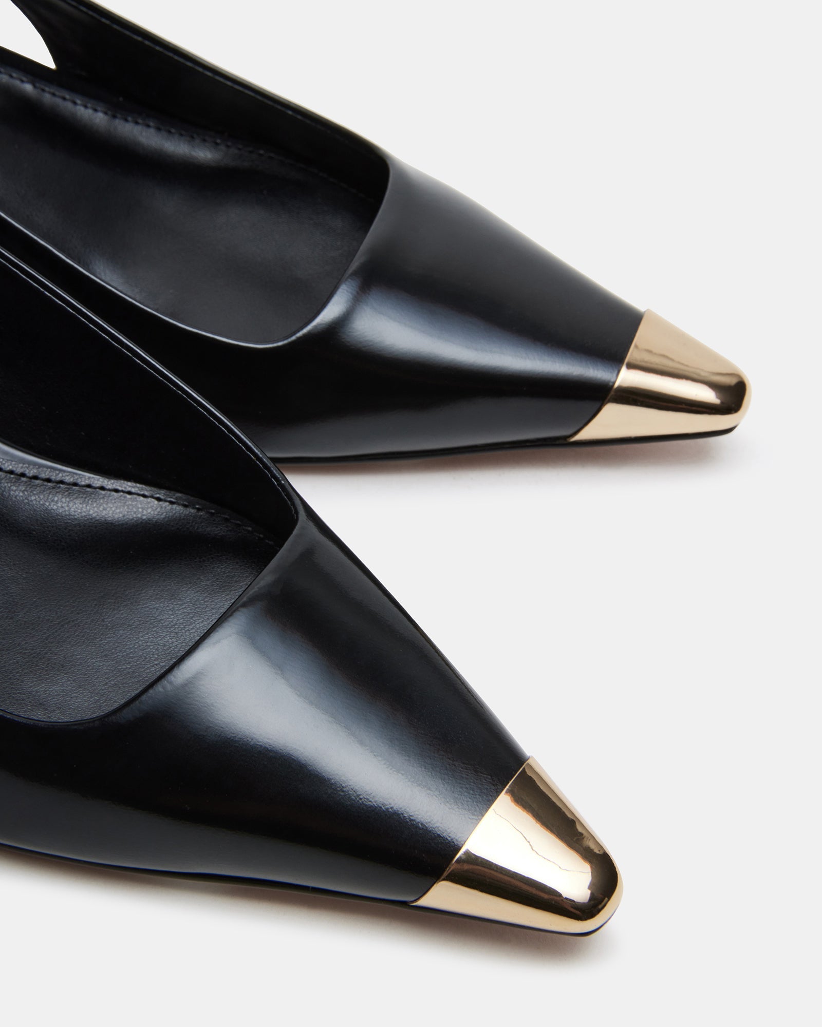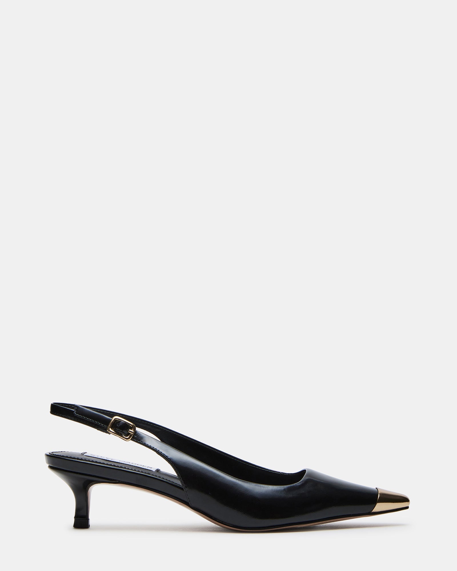 Expertly crafted with a pointed toe kitten heel and toe cap, the KENZ pump heel exudes sophistication. The sleek slingback design adds a touch of elegance to any outfit, making it a must-have for any fashion-forward wardrobe. Elevate your style with these refined and versatile heels.