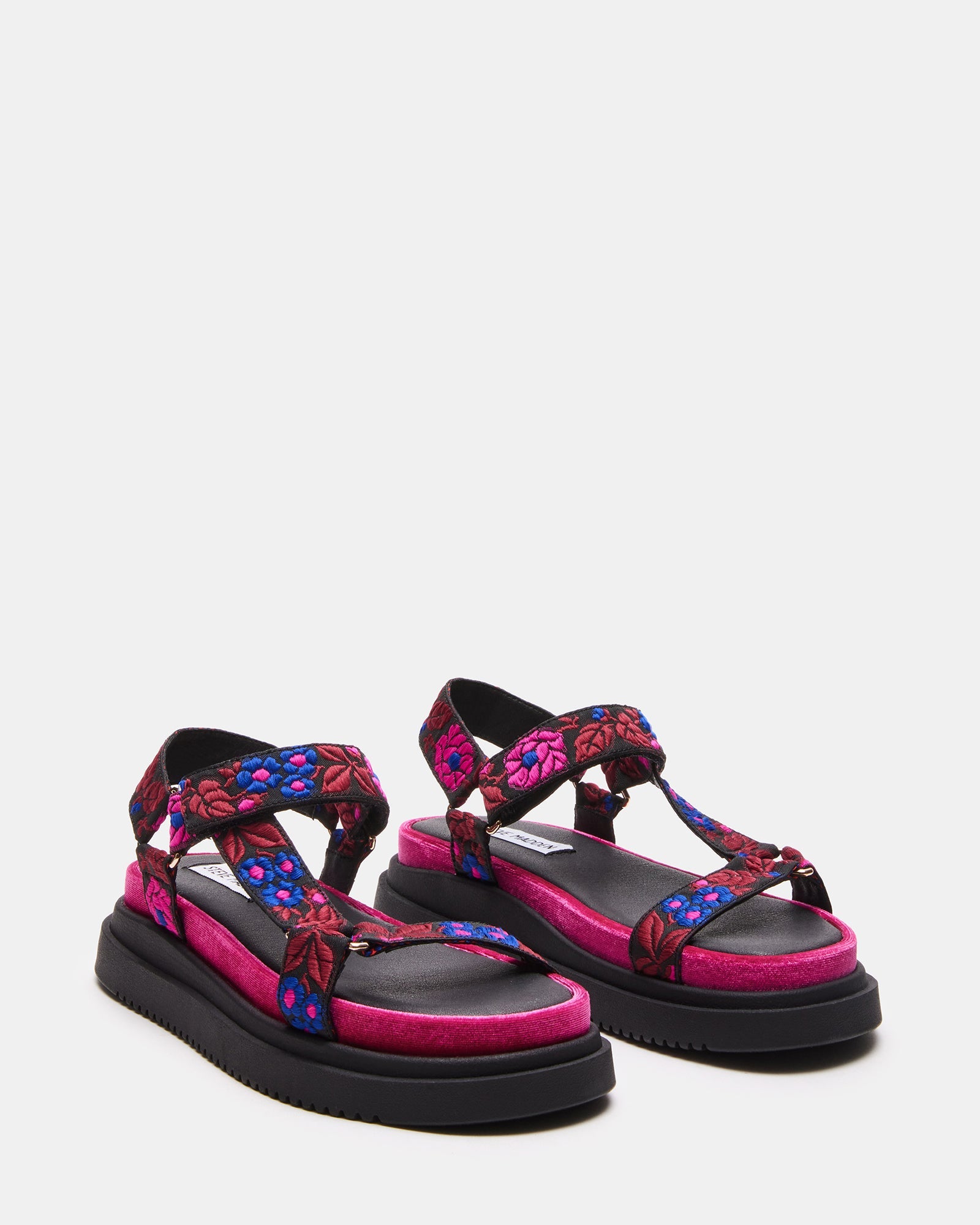 MATINA secures a graduated flatform sole with an athletic-inspired strap design for a supportive adjustable fit.