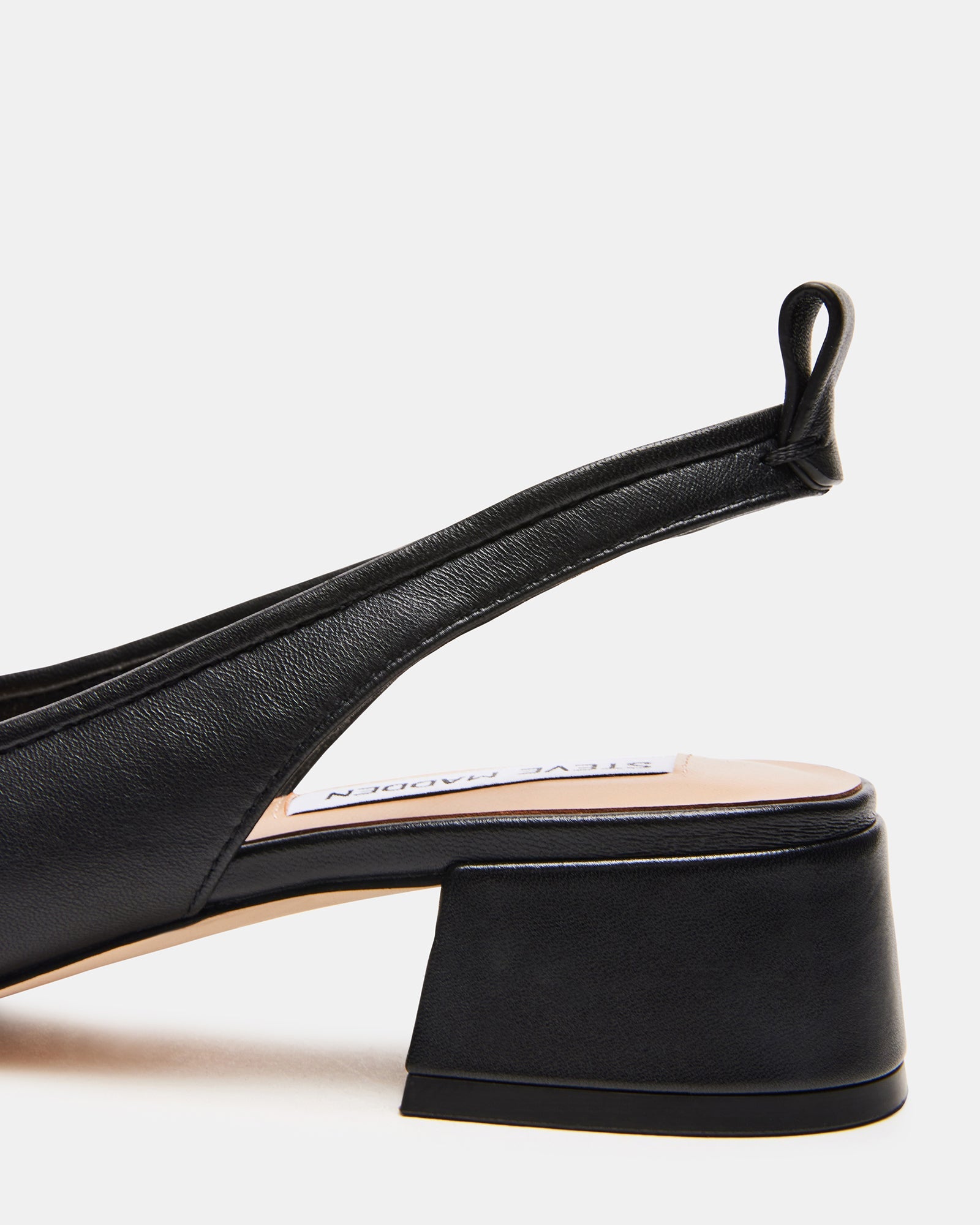 Crafted from sleek leather, the SMITTEN slingback showcases a versatile design with a low block heel and classic ballet silhouette. Elevate your style and comfort with this timeless piece, perfect for day-to-day wear.