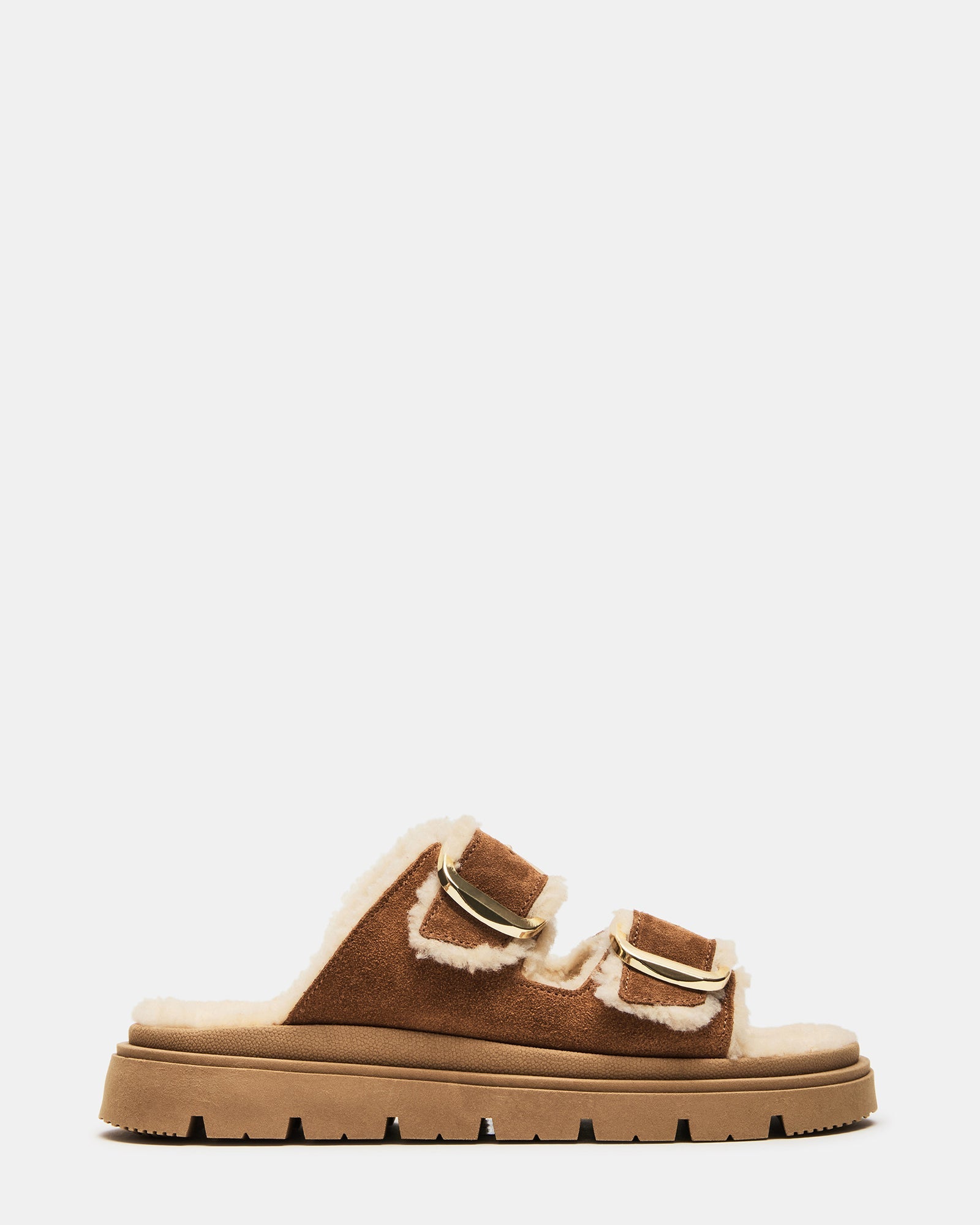 Experience ultimate comfort with our SNUGGLE double strap flat. The slide style allows for easy slip-on and off, making them perfect for everyday wear. Elevate your look with these versatile and cozy shoes.